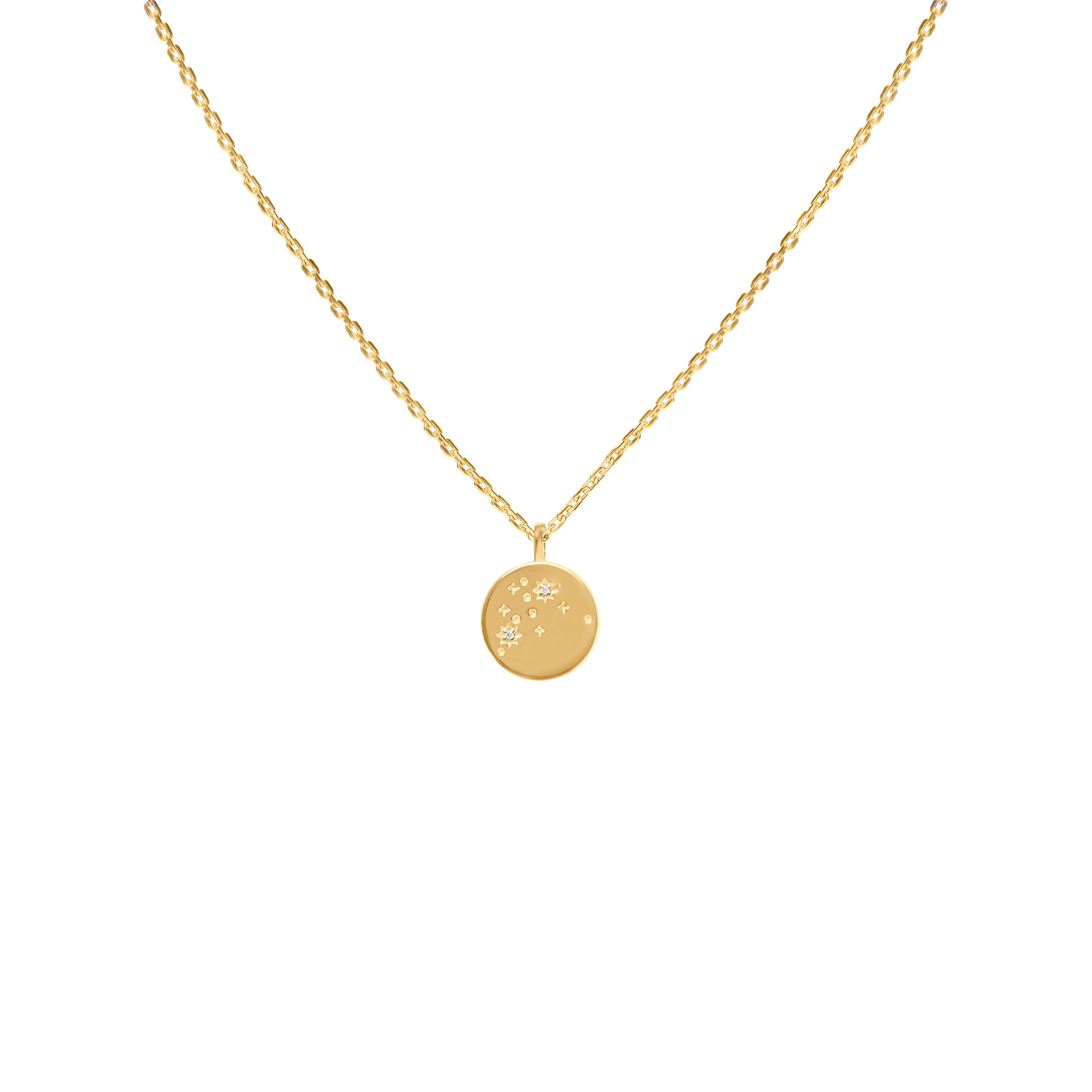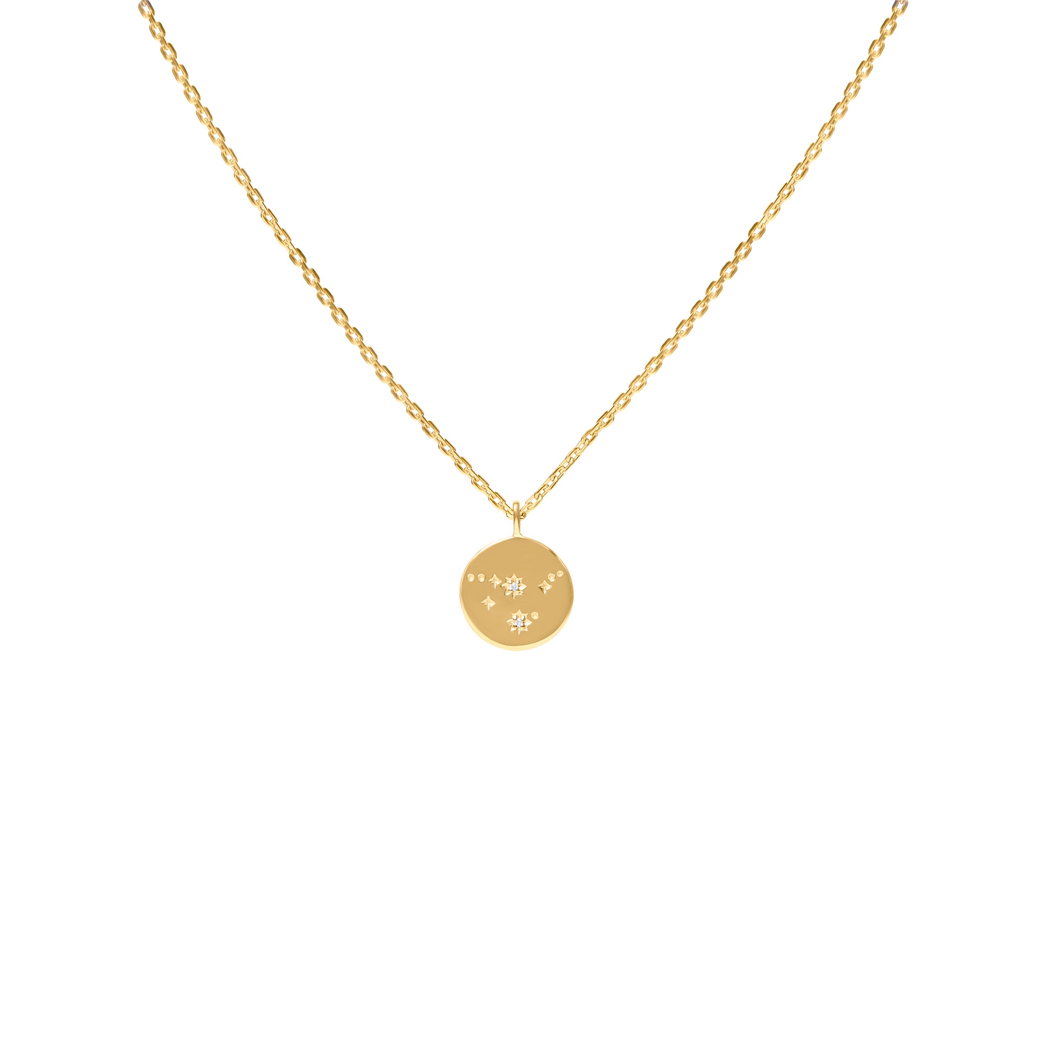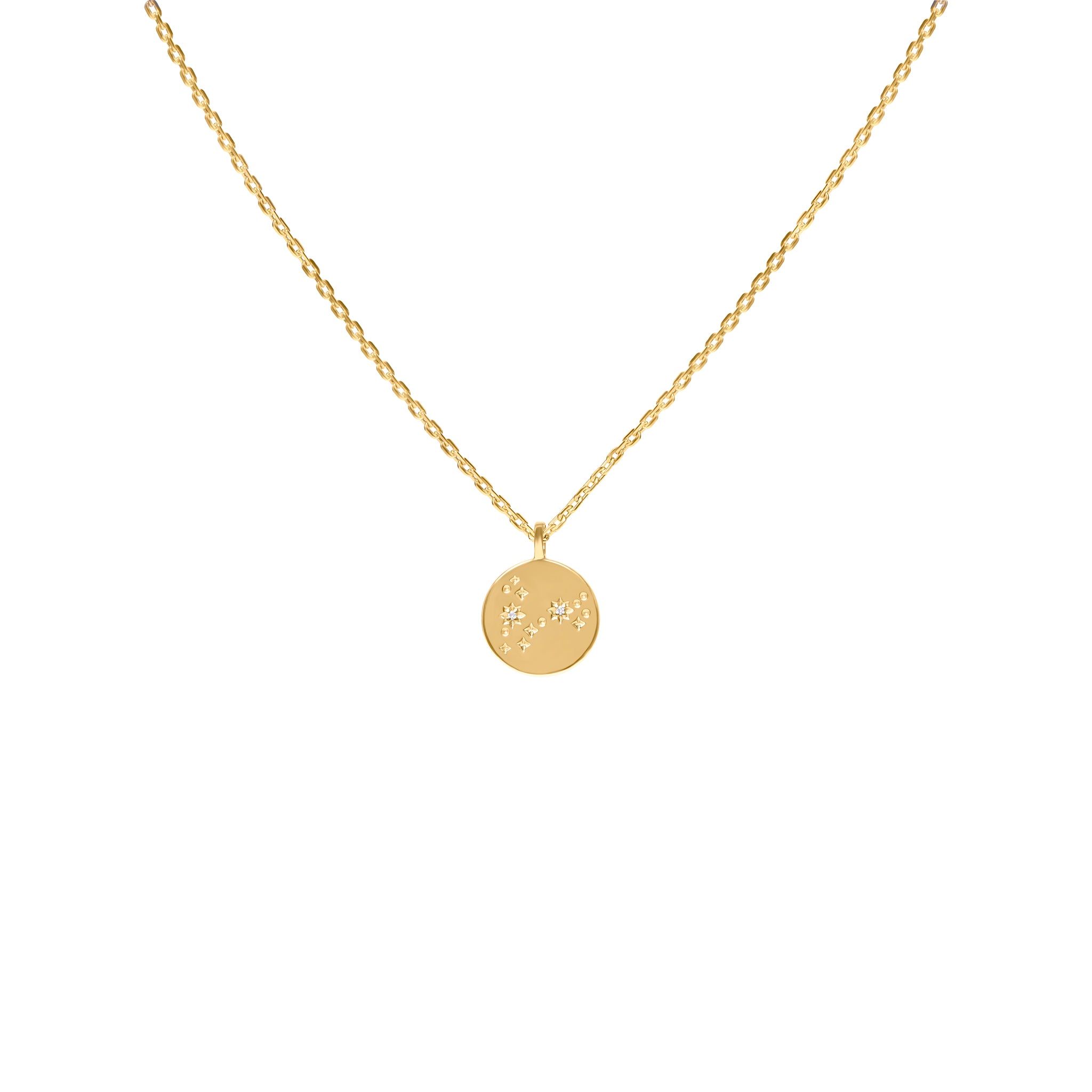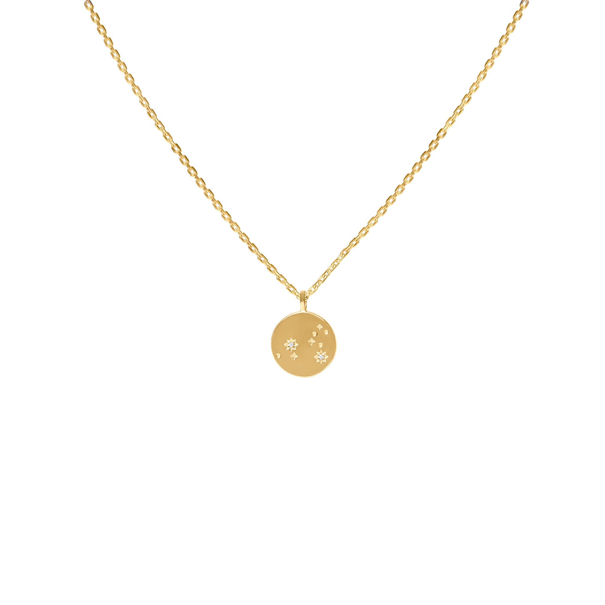 I shaped these pendants after the zodiac constellations, mapping the night sky into gold. Tiny diamonds become the stars — glowing softly as a reminder that our stories are written above us. Wear it close to your heart as your own guiding light, both delicate and eternal.